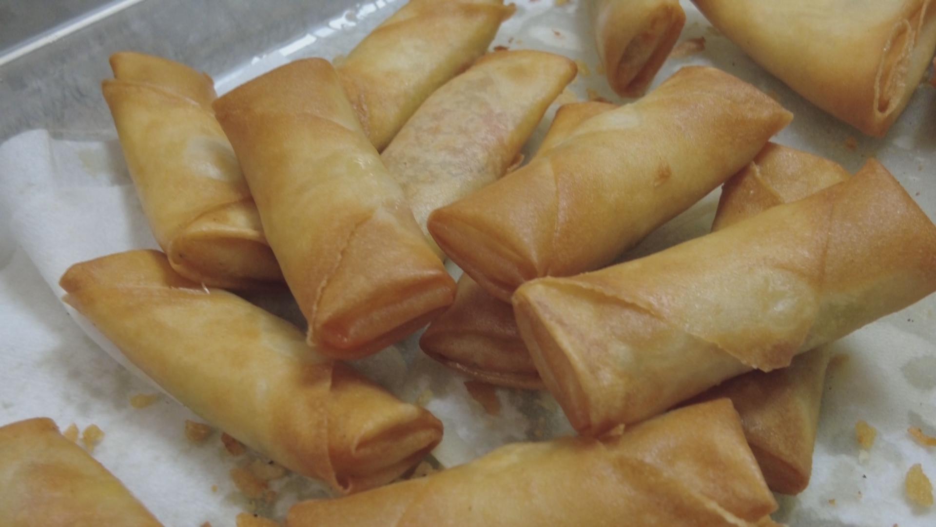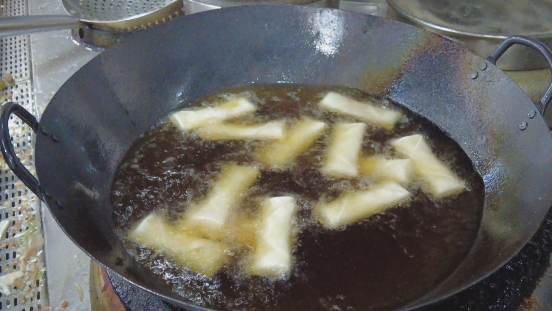 “今天是立春,中国人的传统要咬春,新的一年要吃点春卷,这里面是三丝,也希望新的一年红红火火,兔年吉祥。”