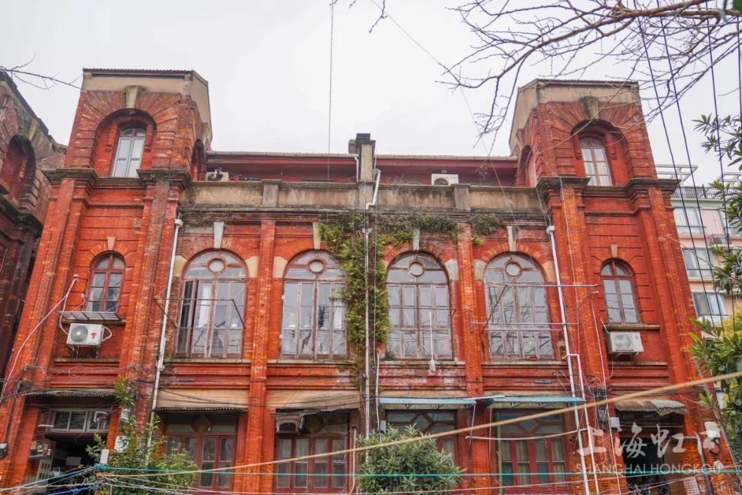 除了旧式里弄,榆林路上有几栋红色花园住宅格外引人注目。