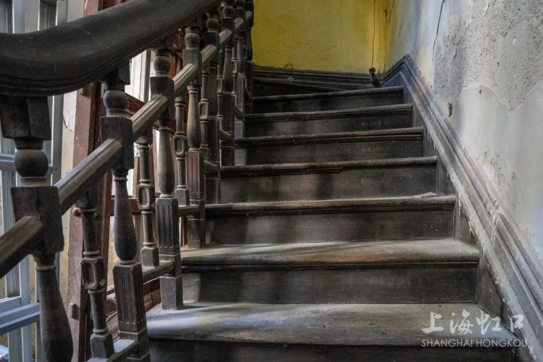 建筑内雕花扶手的木质楼梯,也见证了它们曾经的辉煌。