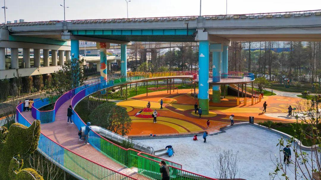 三汇路和中山西路围合的三角地块,是由南向北进入徐家汇城市中央活动区的必经之路,也是周边市民生活休闲的日常打卡地。“彩虹城”就建于此,融“汇生态、汇活力、汇科普、汇关怀、汇友好”之意,起名“乐汇小游园”,近日正式对外开放。
