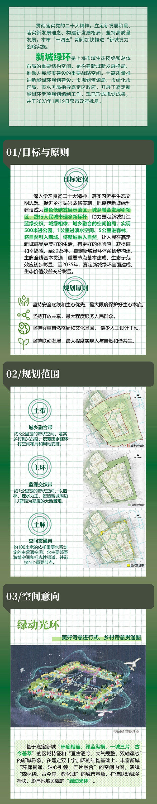 新城绿环是上海市生态网格的重要组成部分,是紧邻新城重要的乡村地区、生态空间和公共开放空间。目前嘉定新城绿环专项规划已完成,相关部门正全力推动规划落地实施。