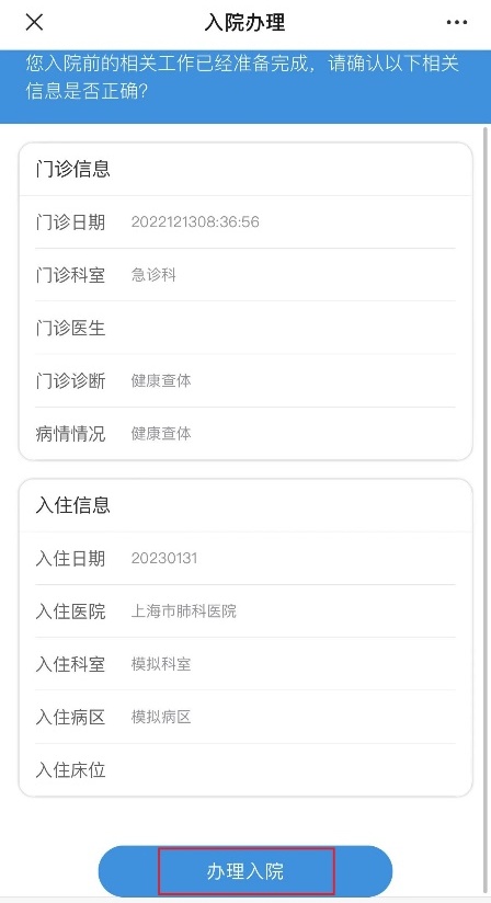 点击“办理入院”