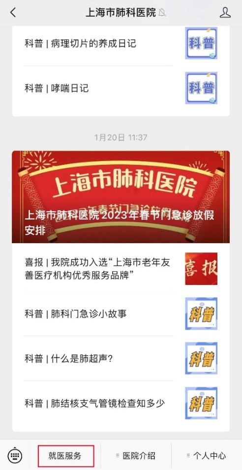 关注“上海市肺科医院”公众号