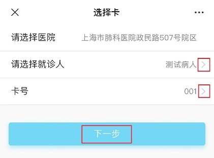 选择就诊人及卡号后,