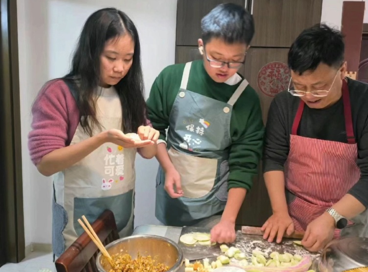 鞍山初级中学的同学们与家人一起进行家庭大扫除,主动为家人分担家务。写福字、贴春联、剪窗花、包饺子、做春卷,大家积极参与到民俗项目中,感受中国年的魅力,乐在其中。