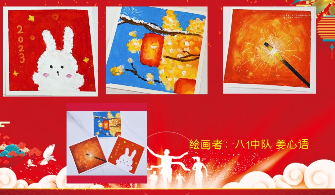 怀德路第一小学一年级的小朋友和爸爸妈妈一起设计制作花灯;二年级设计完成“卯兔报新吉”小报;三年级拍摄兔兔家特色菜介绍视频;四年级从春节的起源、习俗、年文化等角度入手,绘制一幅恭贺新春图;五年级“走近父母童年”,调查采访父母或者家里长辈,展示自己会唱的歌或者游戏。
