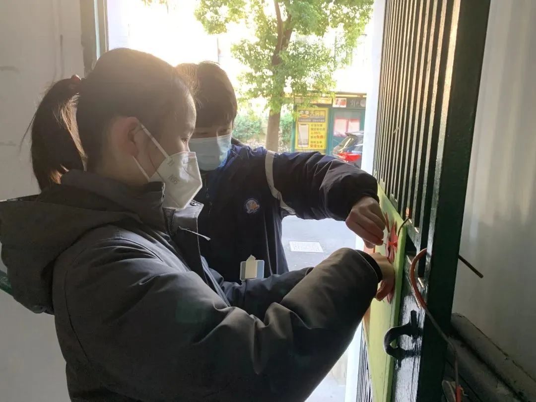上海理工大学附属实验初级中学各班级举行寒假生活指导线上班会,同学们来到社区开展志愿服务活动,写福字、贴福字,为居楼布置节日氛围,慰问独居老人,获得居民的点赞。