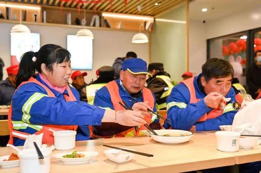 “今天吃到了三个餐厅里比较热门的一些菜品,菜品的种类多,味道也好。我们这些外地来沪的工人常年都在岗位上,社区食堂举办这样一个活动,既有趣也暖心。”一位环卫阿姨笑着说道。