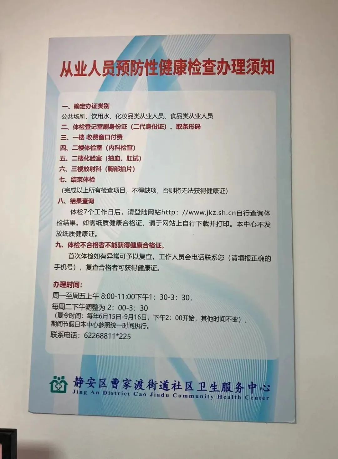 为进一步满足从业人员健康体检需求,近期,曹家渡街道社区卫生服务中心开放从业人员体检服务,为从业人员提供便利。