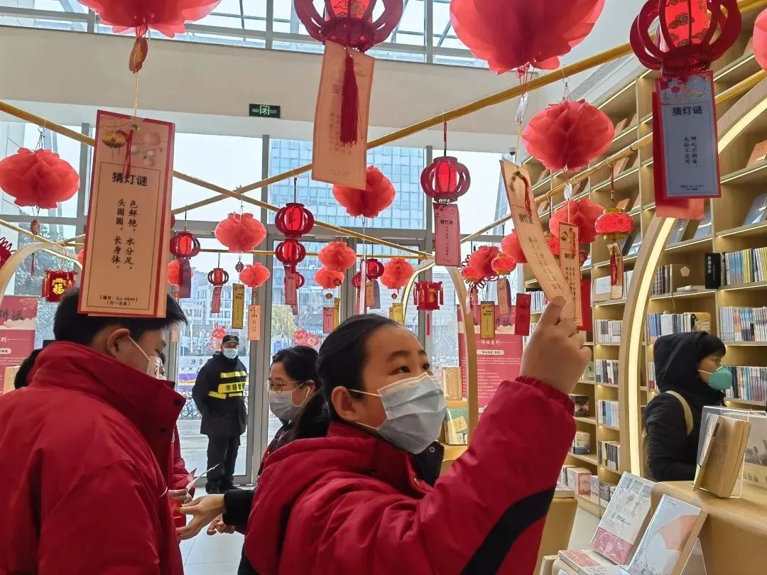 猜灯谜是每年元宵佳节不可或缺的重要环节。学悦风咏书社里的灯谜,从诗词歌赋到日常物品,老少皆宜。“矮个子,桌上站,找书看,他做伴,我要去睡觉,他先闭上眼,我觉得这个应该是台灯。”不一会,王澜小朋友的手上已经摘下了好几个猜出的灯谜。