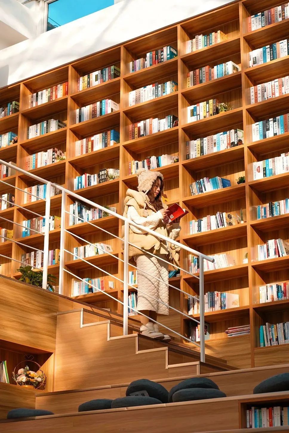 全景天幕、阶梯书房,这两大元素齐聚城市书房,哪有不打卡的道理?以满墙书柜为背景,背靠在书柜前,手捧一本书,拍人物特写;抑或是镜头拉远,侧站在书柜前,认真品读一本好书,感受岁月静好。