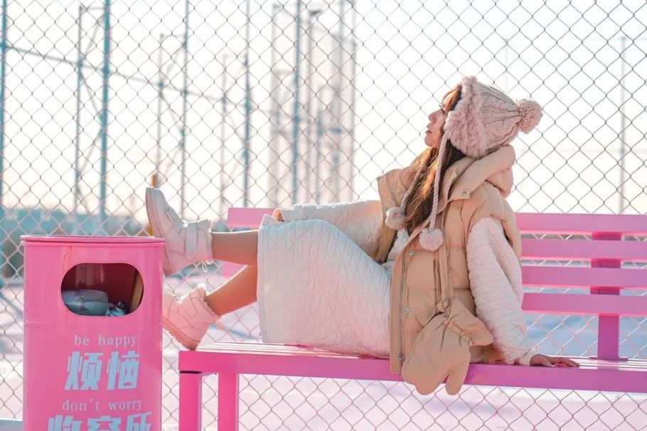 粉红网球场,场内场外都能出片。场外,粉红色的座椅和垃圾桶,是画面中的点睛之笔,人物只需坐在座椅上,脚轻轻搭住垃圾桶,轻松休闲的街头风扑面而来。场外还有一堵涂鸦墙,粉色的地面、黄色的涂鸦,随手一拍就有不错的视觉效果。