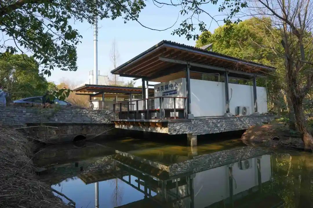 英科中心同样坐落于浦江涵养林内,占地300亩,距离黄浦江仅300米,是渔沥村试点探索总部经济的标志性项目。2020年9月,上海英科实业有限公司下属英科环保、英科医疗正式入驻,主体由英科展示中心及6栋临湖办公院落构成。目前每年落地税收3000万元,村级结算近300万元。