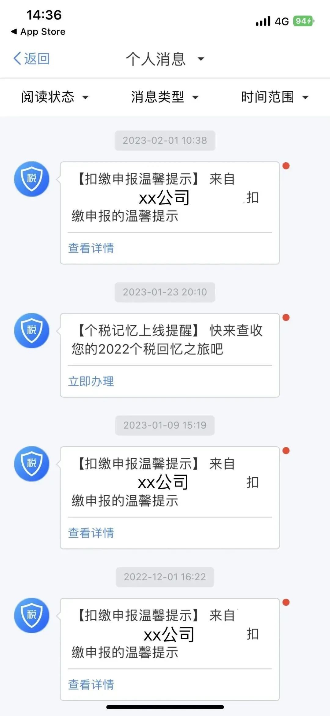 方法3:点击首页右上角对话框图标,查收【扣缴申报温馨提示】。