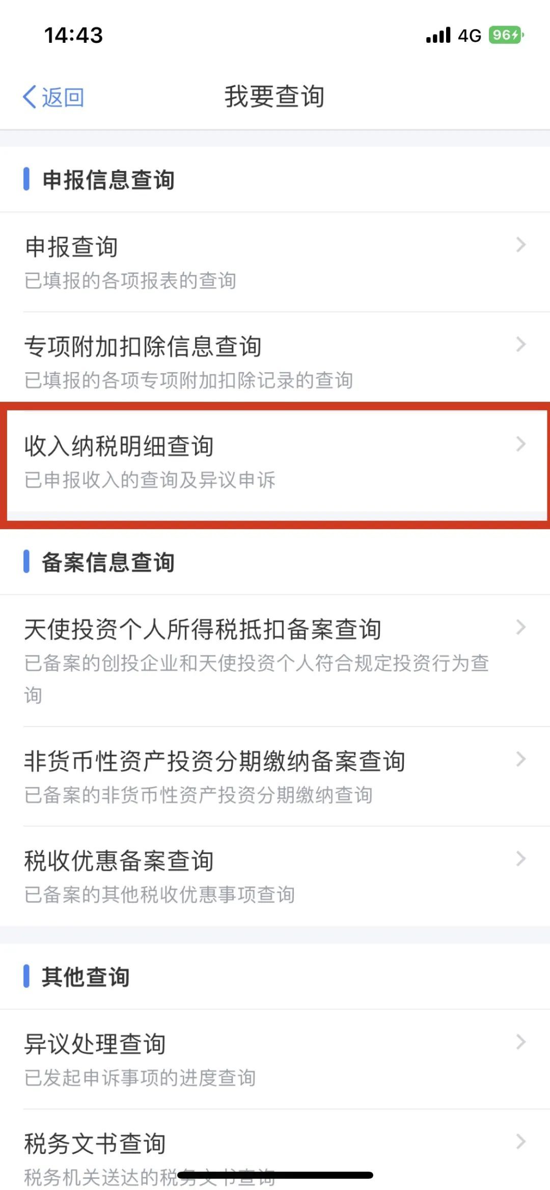 方法1:点击首页【我要查询】-【收入纳税明细查询】。