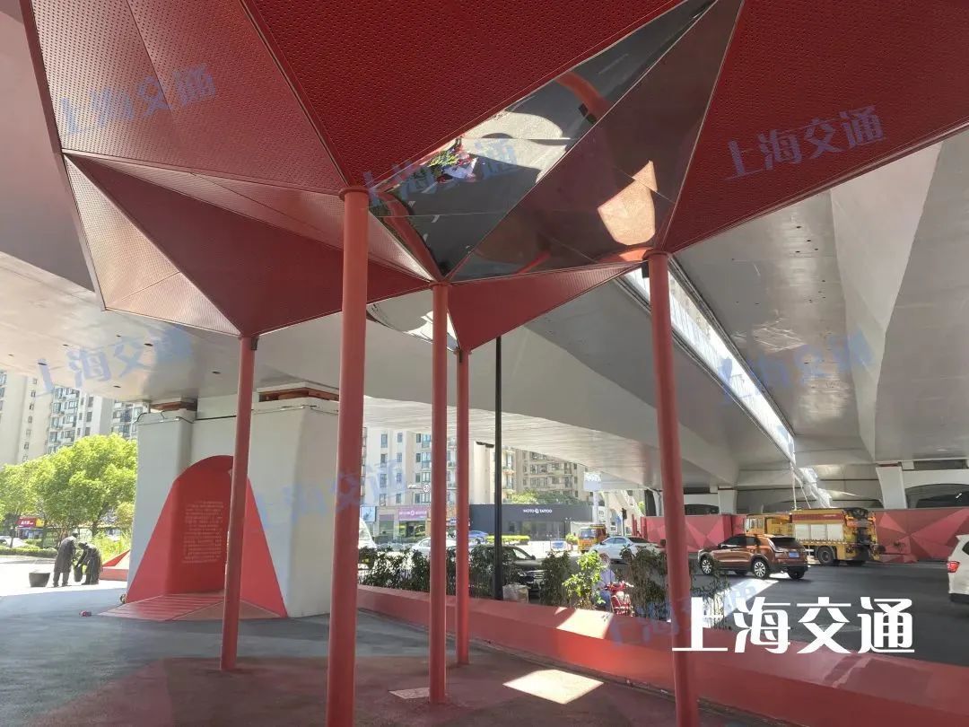 古北路桥下空间位于长宁路古北路附近,以红色三角彩钢为元素,创造出一个富有活力的公共空间。
