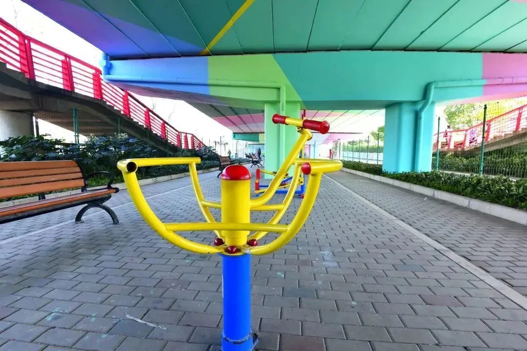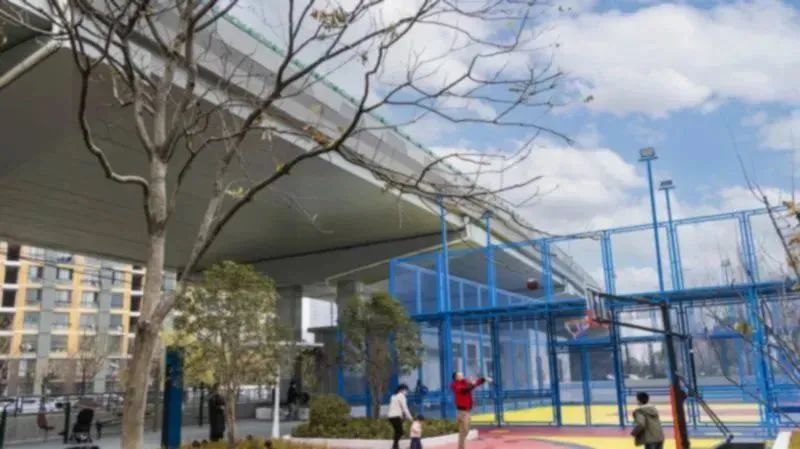 浦东新区高行镇的赵家沟北侧桥下空间通过改造体育运动场所,增设儿童游乐设施,并通过主体墙绘、景观照明等软性装饰,将闲置或未被充分利用且没有明确功能的桥下空间打造成集健身运动、休闲娱乐、景观绿地等复合型功能于一体的活动场所。