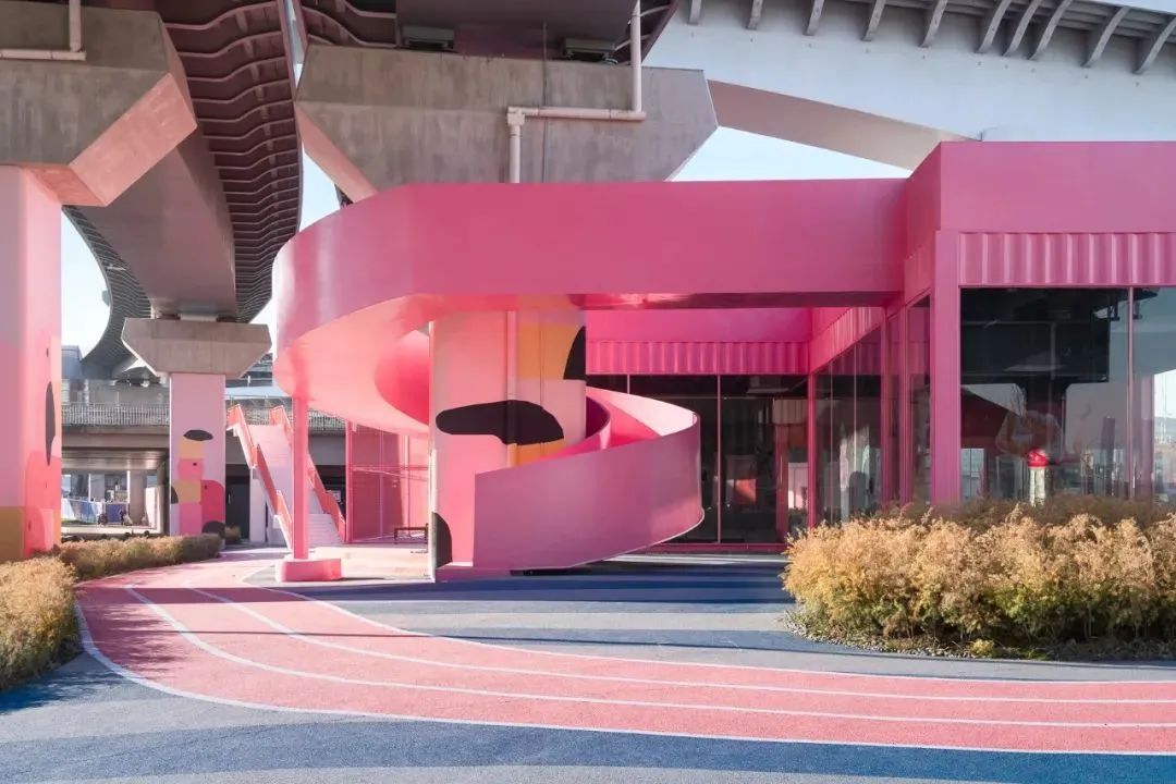 在长宁区苏州河畔、北翟路高架下,全新的火烈鸟公园与周边的环境形成了鲜明的对比,很难不让人眼前一亮。桥下的整体色彩选用明亮而富有想象力的粉色系,呼应了火烈鸟主题,打破原本场地给人带来的灰暗印象,让中环桥下空间的形象焕然一新。