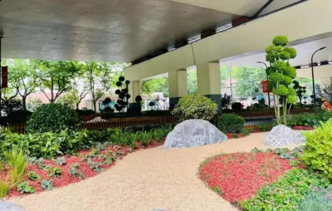 黄浦区南北高架桥下空间“城市绿洲”与绿化部门合作,突破常规,通过丰富植物配置、改善种植环境、增添趣味小品,利用植物和非植物元素合理组合设计,提升桥下城市空间绿化微景观。