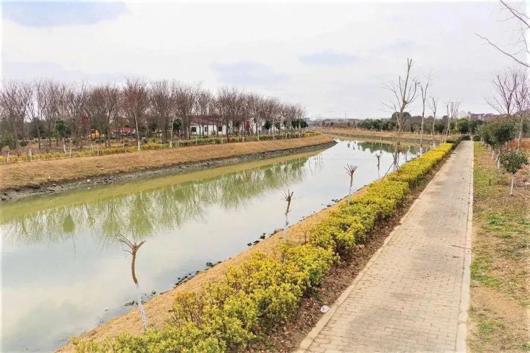 河道两旁均建有人行步道、休闲座椅,且设置安全警示,沿河有水环境、水文化宣传,满足防汛和日常管理要求。人行步道两侧种植杨柳、香樟、桂花等树木,岸坡种植红叶石楠小灌木并铺设草皮,努力打造人水和谐的良好环境。