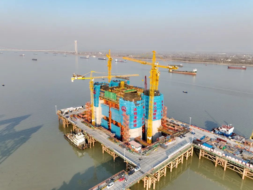 在长江北岸的上海至南京至合肥高铁通泰扬特大桥施工现场,中铁十四局正组织对553号桩基进行自检,施工作业热火朝天。伴随着反循环钻机的轰鸣声,558号桥墩第10号桩基钻进施工也在加速推进。