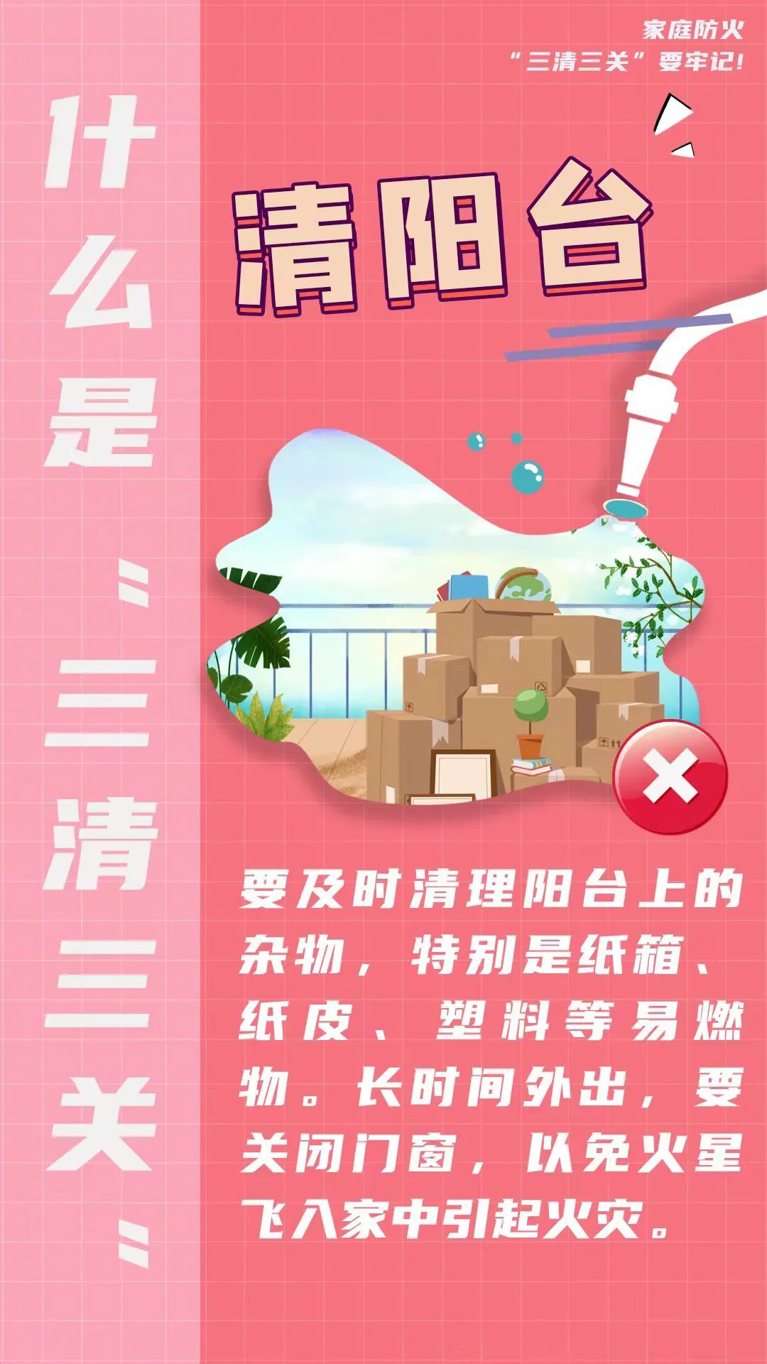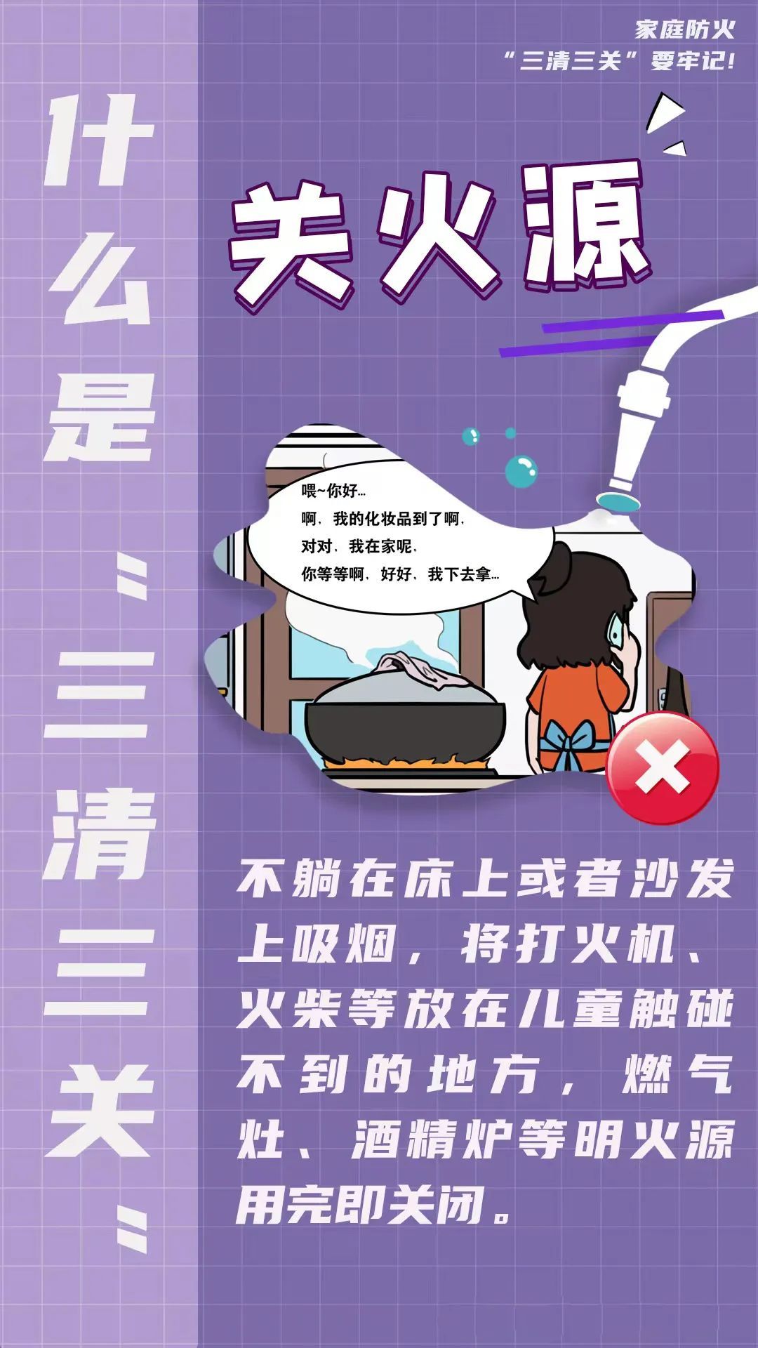 消防安全无小事,早一时预防,多一些警醒,才能从根本上杜绝火灾隐患,保护生命安全。家庭防火,“三清三关”需牢记