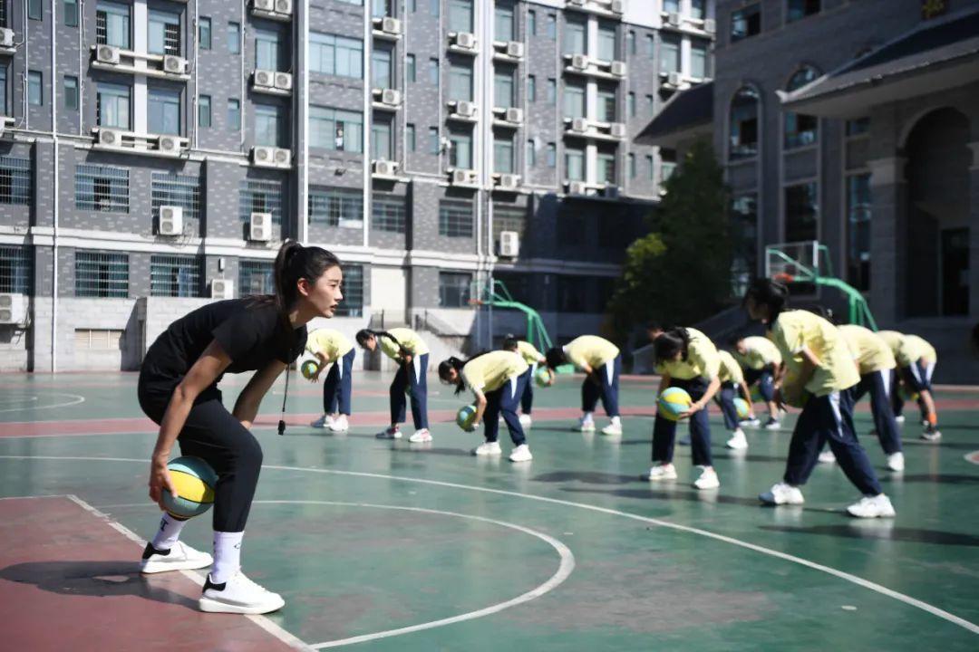 2022年9月6日,长沙市明德华兴中学的体育老师和篮球队主教练于红俊(前)在给学生上体育课。新华社记者 薛宇舸 摄
