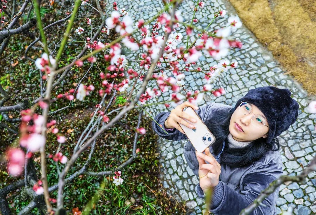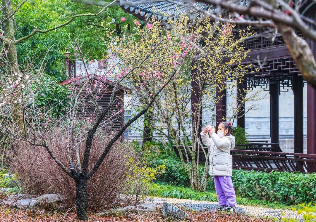 “不同于寻常梅花,绿萼梅的花萼为绿色,花开之时,花色洁白,更显脱俗、典雅。”醉白池公园绿化工程师沈彬介绍,最早开花的是江梅,接下来绿萼梅、朱砂梅、宫粉梅也将陆续开放,花期大概会持续到4月初。