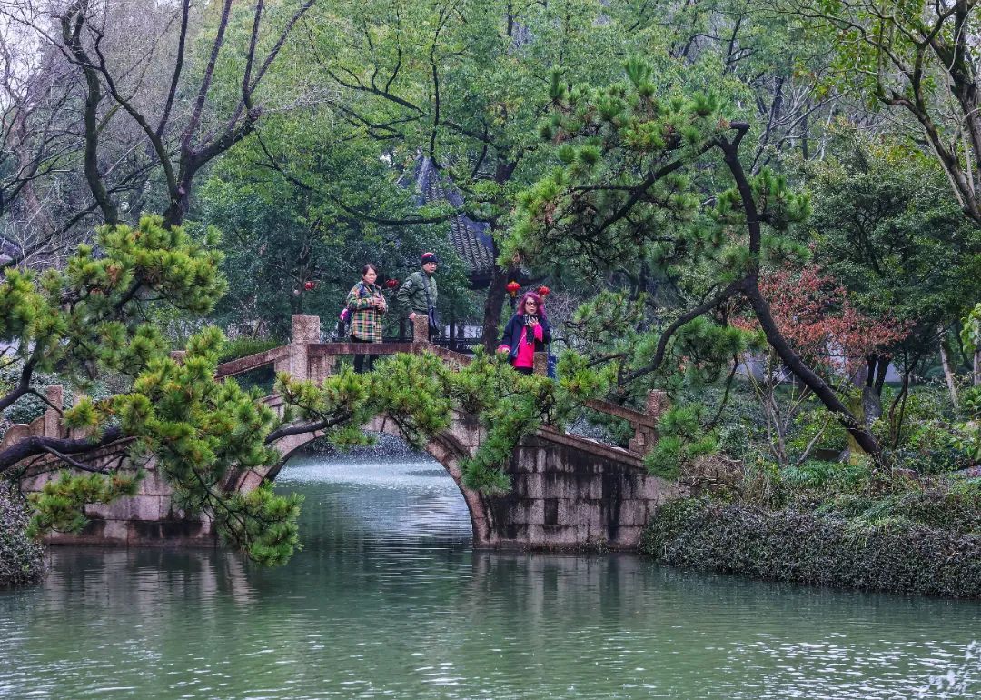 “开百花之先,独天下而春。”立春过后,经过几场春雨的滋润,松江的梅花悄然绽放。2月10日上午,记者来到醉白池公园,看到簇簇梅花和着雨露,晶莹剔透、生机勃勃,有的含苞待放、傲立枝头,有的花瓣舒展、芬芳吐蕊。