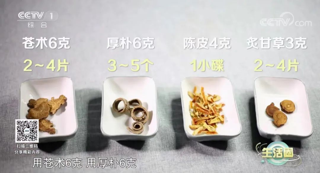 材料:苍术6克、厚朴6克、陈皮4克、炙甘草3克。