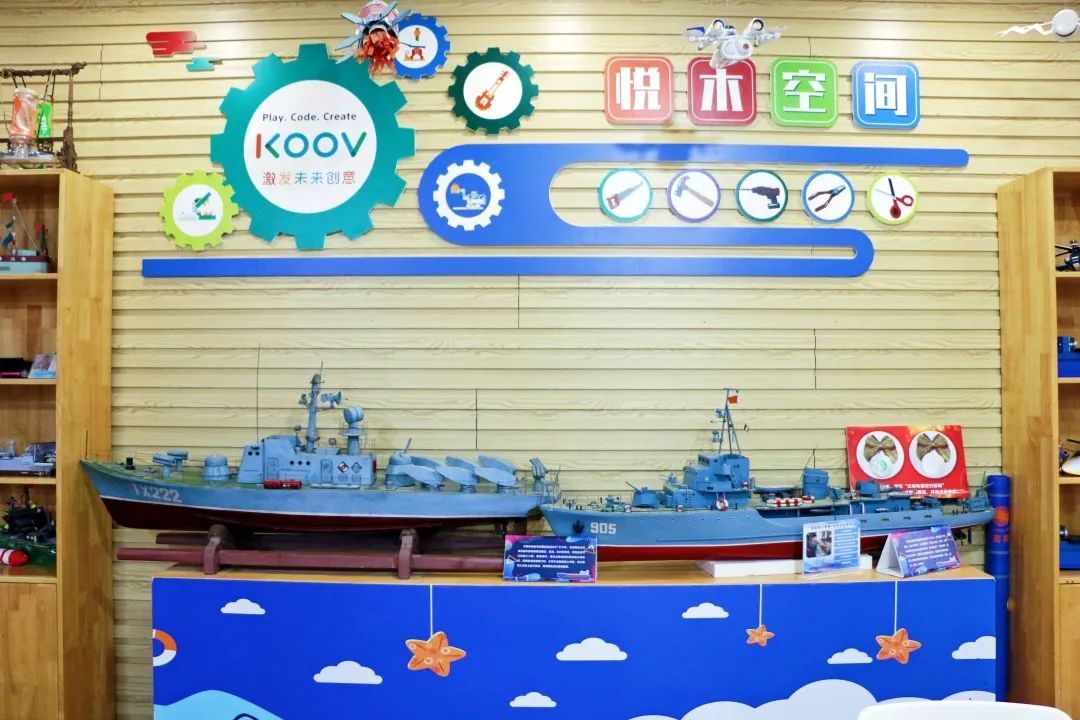在“木工坊”展示区域,摆放着学生们制作的各种手工作品:预备扬帆起航的木船、极具个性的木偶等等。全国青少年优秀科技辅导员周中梁老师领衔的师资团队指导学生们创造各类作品,提升创造力,弘扬工匠精神。学生们也在各项科技活动中斩获佳绩,作品主题涉及创造发明、陆海空模型、生物环保、机器人等多个领域。