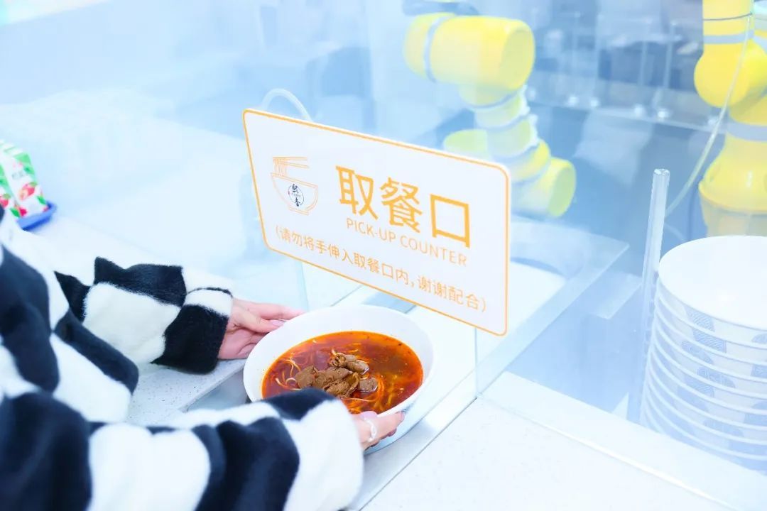 “我们只需将精选的面粉放入机器内的面粉区,剩下的包括面条的压制、煮面、添加浇头都由机器自动完成,大大节省了人力。”熙香事业运营部经理范艳萍向记者介绍,顾客只需在餐厅门前通过点餐屏幕或二维码选购、下单、支付即可。机器大厨就会自动接单“工作”。