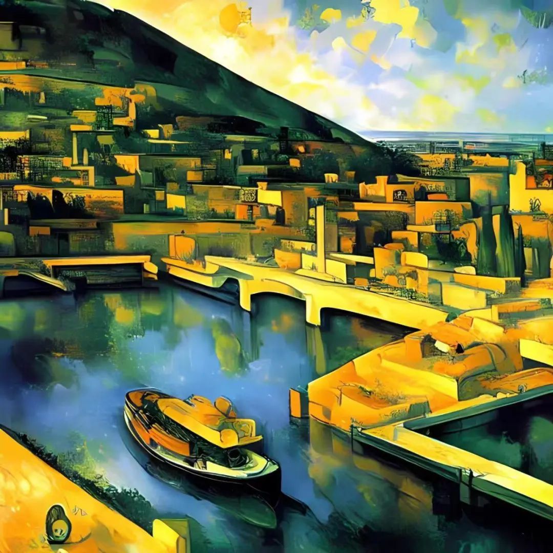 以“城市”为关键词,AI生成一张有港口的画面,似乎在说“以港兴城”。