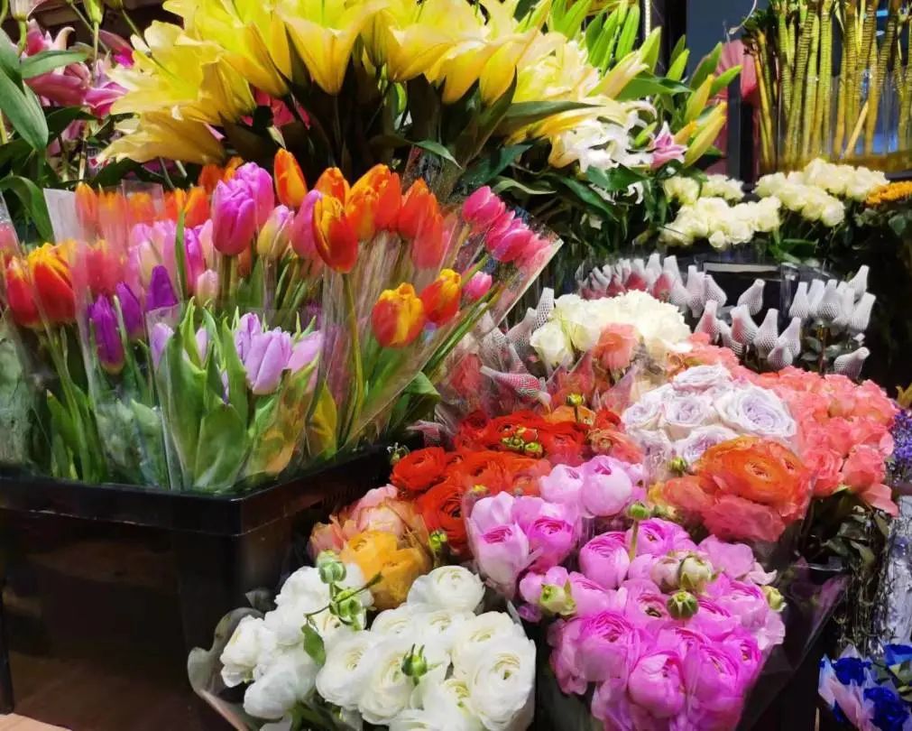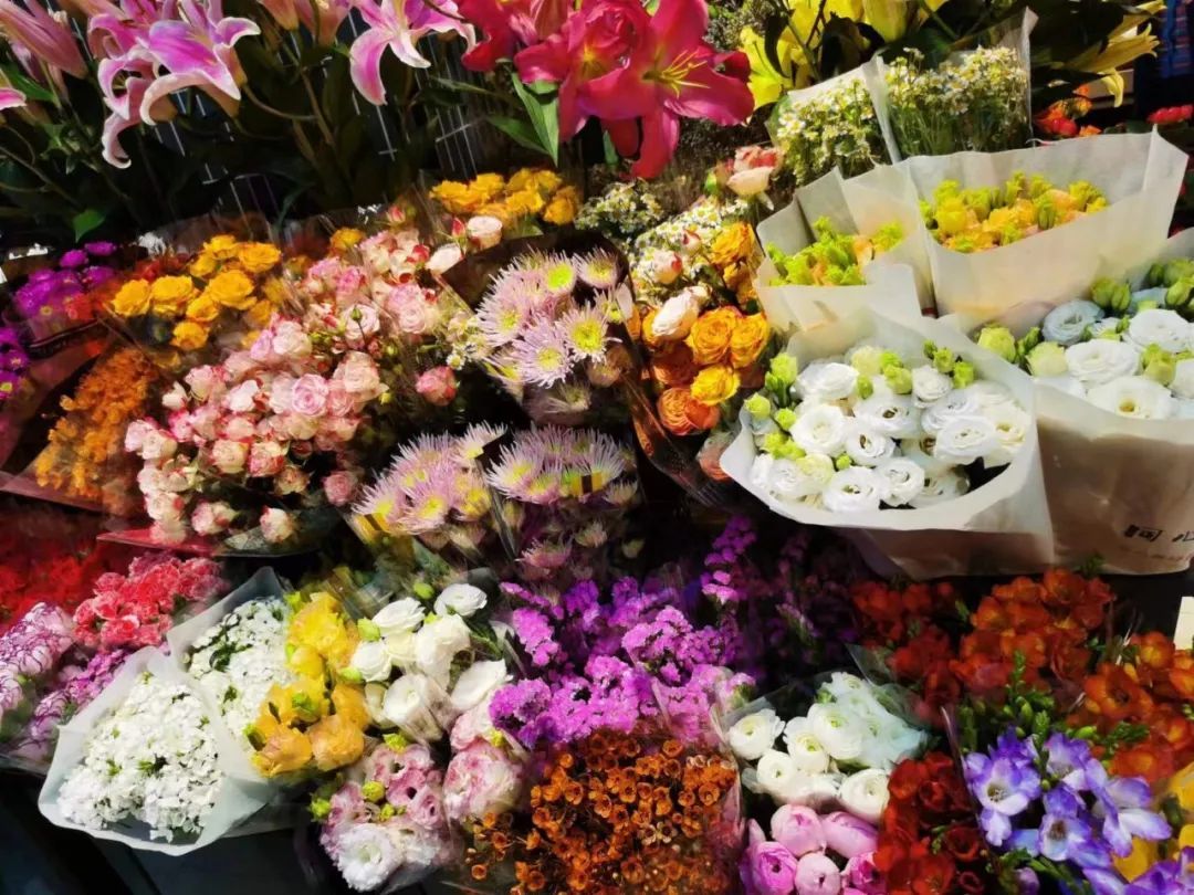 今天早上8点,长宁美天新渔菜市场的玫丽花店被各色花卉包围,鲜艳夺目、馥郁芬芳,令人赏心悦目,心旷神怡。