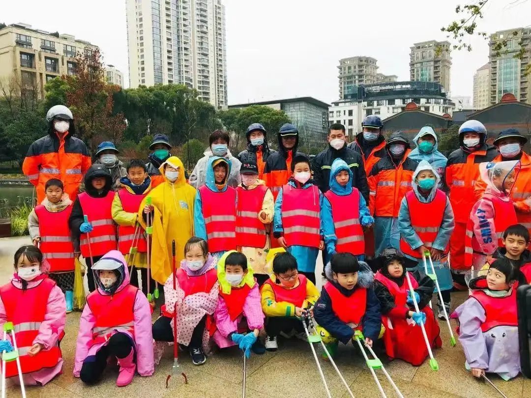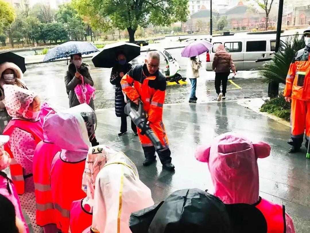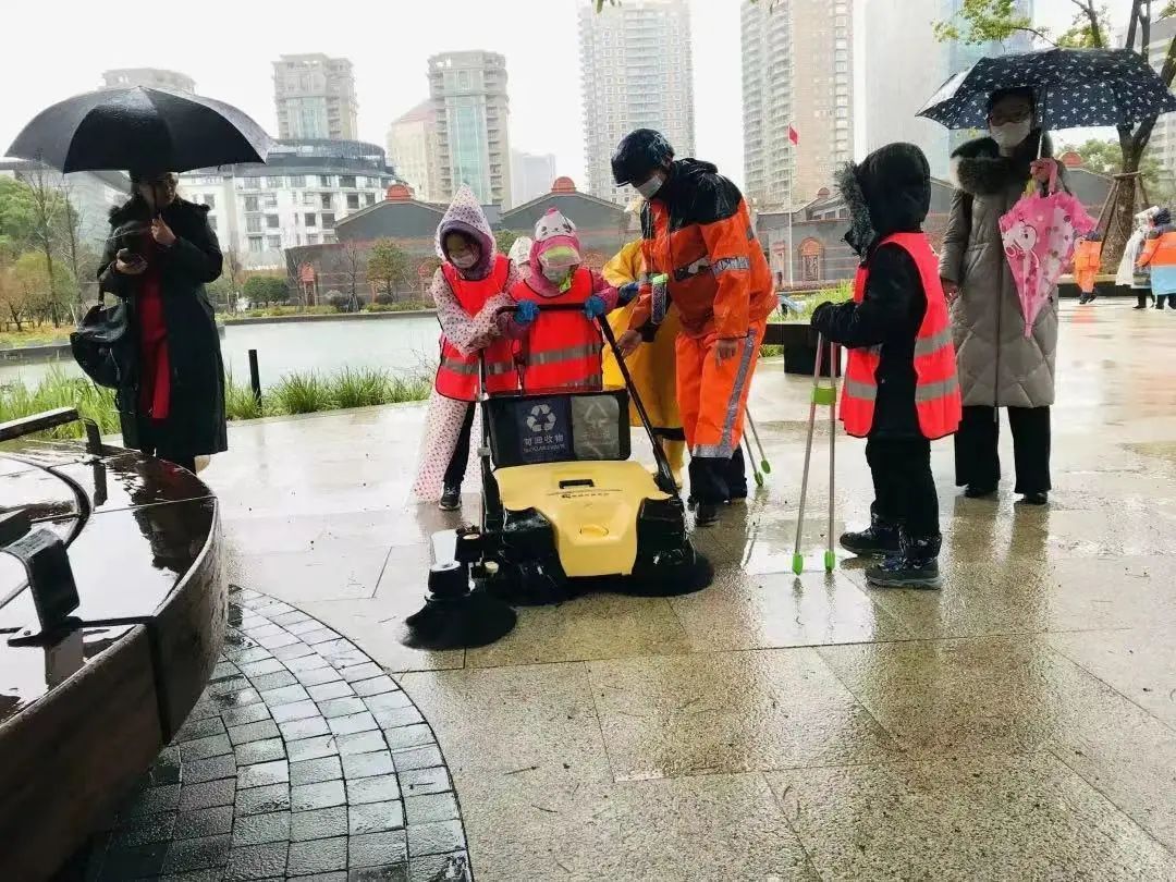 2月12日,一大会址高标准精细化保洁区域里来了一群“小小环卫工”。虽然下着雨,气温也较低,但来自周边社区的小朋友们却热情高涨,一早“上岗”,体验了一把寒雨中环卫工人的辛苦与不易。