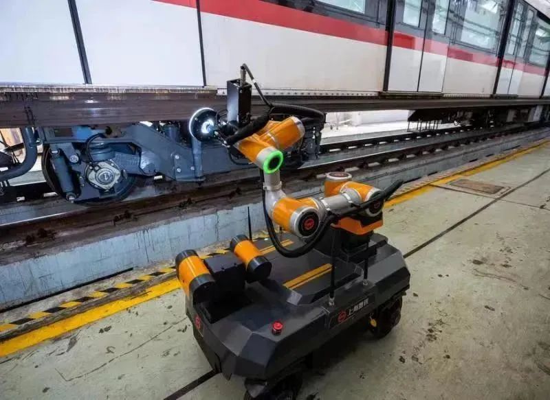 待地铁维保车辆专业技术工程师设置完相关参数后,“瓦力”便从充电仓驶出。伸出机械臂,对准列车关键检修点拍照,而后转动摄像头,再次拍照。侧方检查完毕后,“瓦力”又驶入地沟股道,钻进车底继续工作。