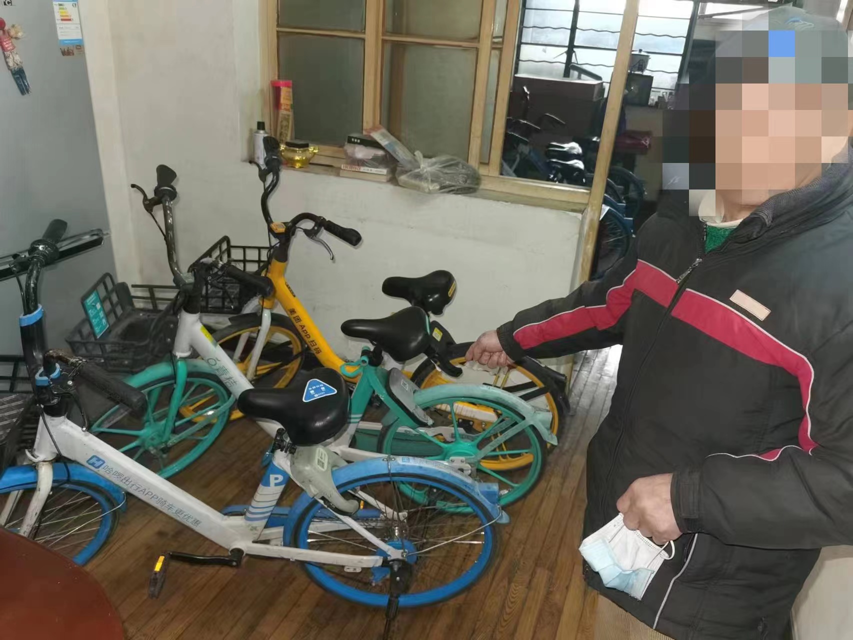 2月10日,民警根据前期侦查掌握的情况,在该小区1楼某户找到了涉嫌盗窃共享单车的男子王某。在王某家中,除了报警人刘先生公司正在寻找的异常车辆外,还有另外7辆各种平台的共享单车。