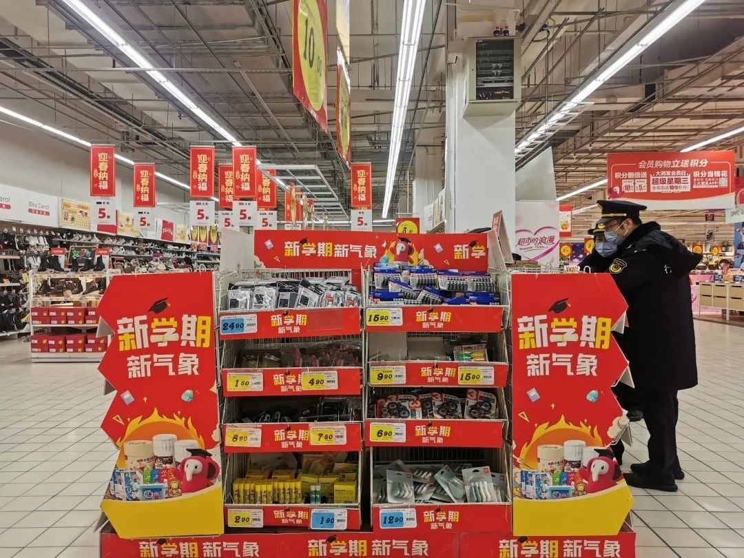 随后,执法人员来到一家大型商超,查看了商家文具产品的进货信息、标识标签等信息。
