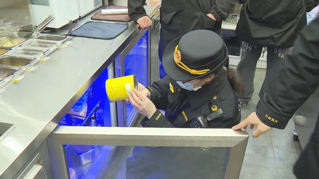 据执法人员介绍,此次检查主要围绕从业人员卫生管理、设施设备运转情况、加工场所环境卫生、食品原料贮存管理、餐具清洗消毒保洁等方面。