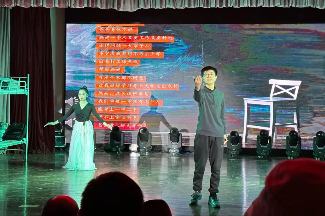 饰演金裕龙的是高二(1)班学生盛辰昊。“在不断研读剧本、体悟金裕龙的心路历程中,我深深感受到了他的无私大爱和对教育的情怀。”盛辰昊告诉记者。饰演小志的高二(3)班学生郝衍瑞表示:“通过这个角色,我意识到我们应该胸怀大志、砥砺奋进。”