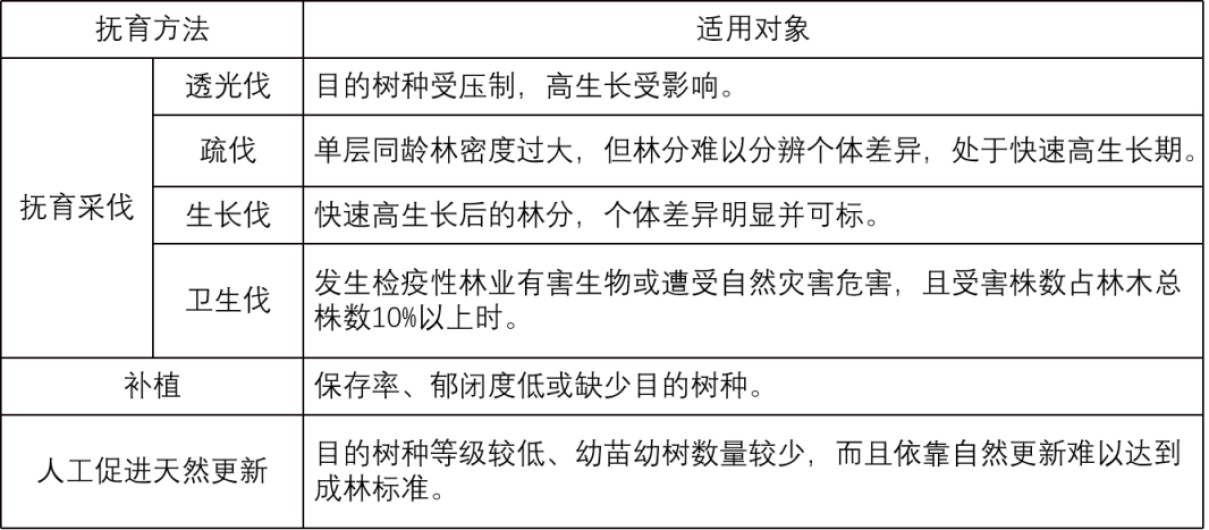 不同抚育适用的林分对象