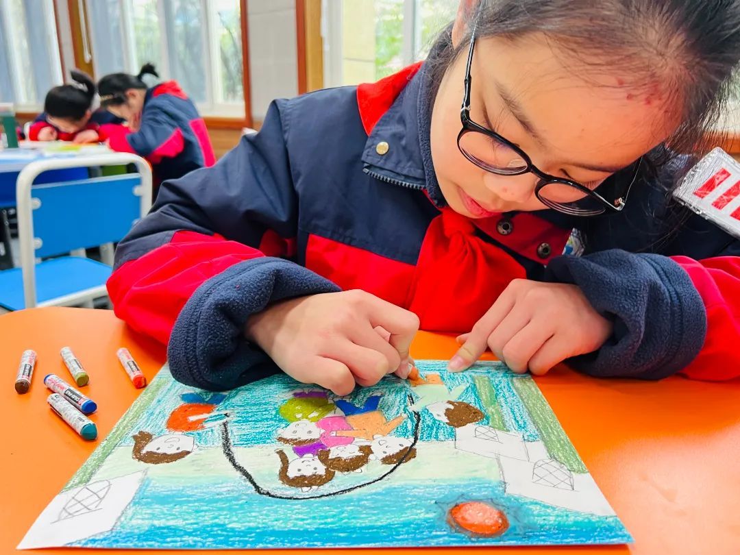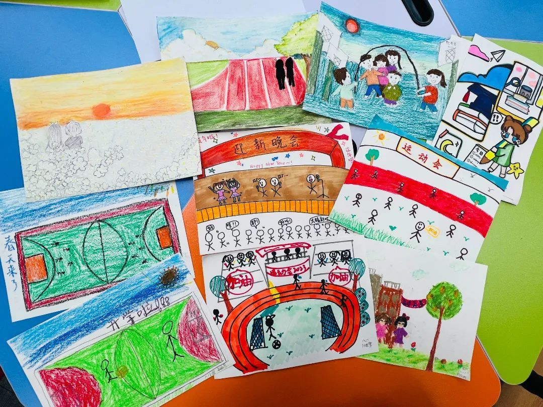除了满满的仪式感,学校特别准备的开学第一课把学生们迅速拉回熟悉的校园生活。课堂上,心理老师带着孩子们画出属于自己的“心情漫画”。学生们拿起画笔,一笔一画地描绘着脑海中的校园生活美好瞬间。在孩子们的画笔下,有运动会上齐声高喊“加油”的热闹场景,有和同学们一起上体育课的开心笑容,还有和好朋友一起散步说悄悄话的轻松一刻……