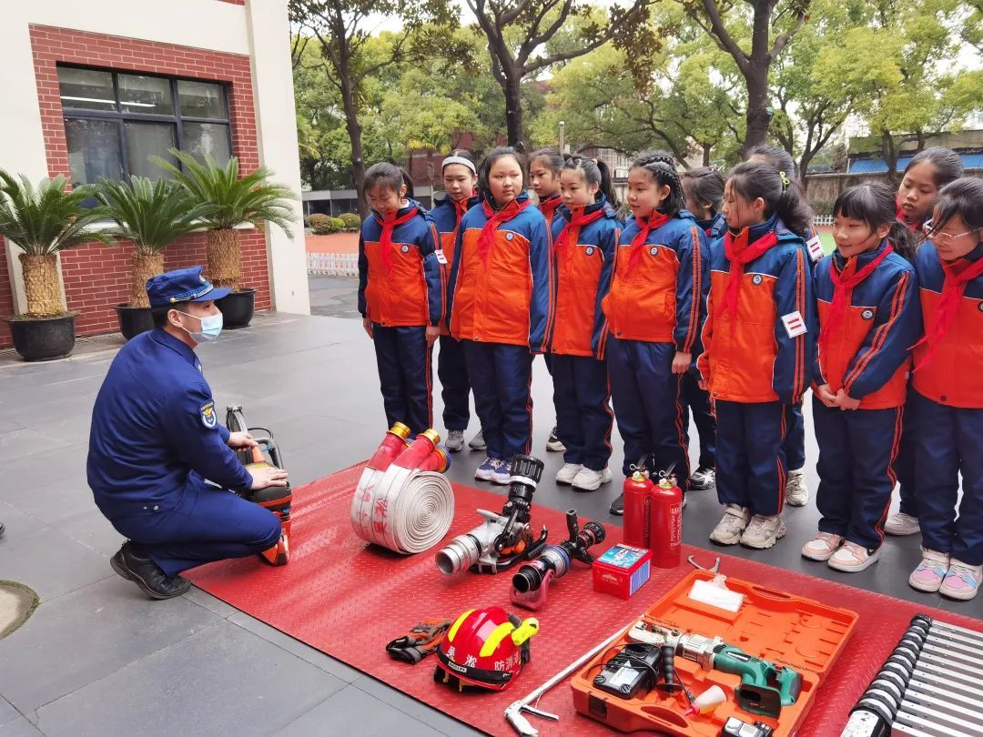 上午,在江湾中心小学的校园里,消防员们早早摆放好各类消防设备,搭好应急救援帐篷,准备好为学生们带来新学期消防安全第一课。