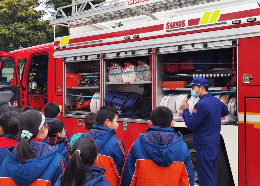 此外,宝山分局治安支队还带领小朋友进行了火场逃生现场演练,参观了消防车以及车上的各类设备,并通过有奖竞答的方式进行消防知识的科普,小朋友们热情高涨,踊跃参与。