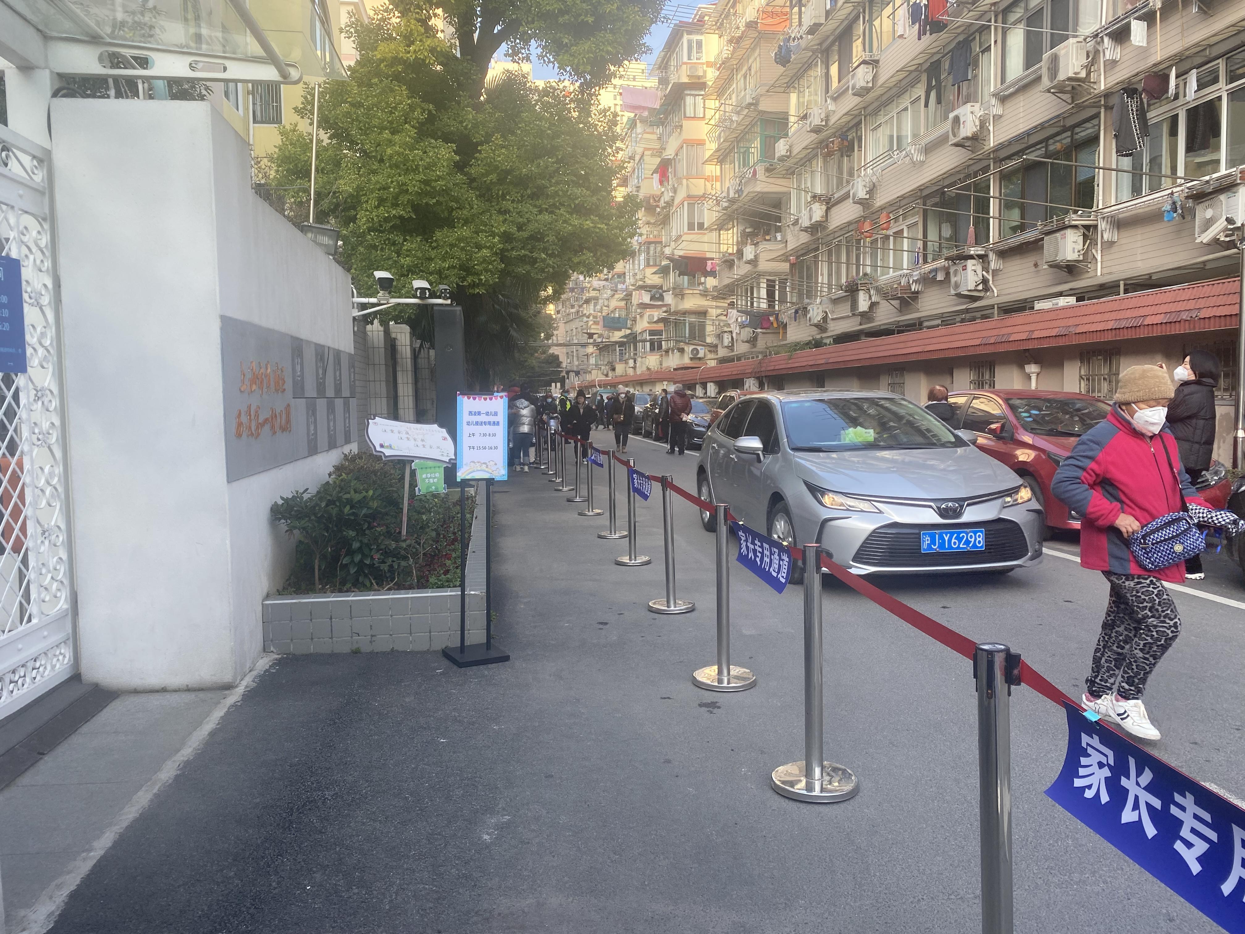 2月15日是开学第一天,细心的家长们发现黄浦区西凌第一幼儿园门口多了一条一米多宽、近五十米长的通道,接送幼儿的时候这条通道其他人车都不能通过,大大提升了校门口的安全系数。