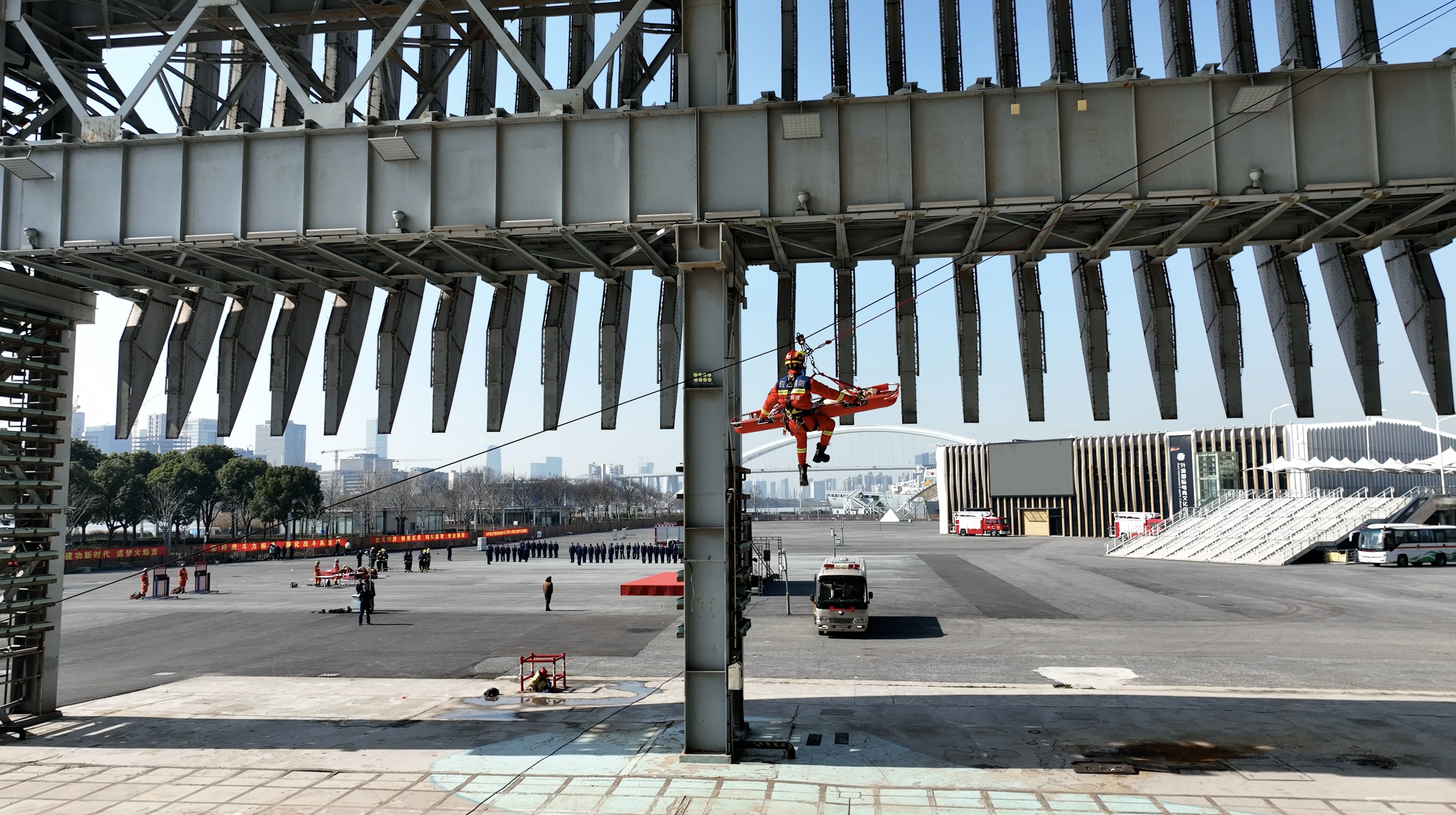 开训枪响后,全员闻令而动,奔赴战位,各方阵迅速展开低温条件下火灾扑救、攻坚技巧、水域救援、高空救援、车辆装备操作、队列训练等科目训练,拉开新年度业务训练大幕,以实际行动表明振雄风、创辉煌的决心以及先行引领、走在前列的志气。