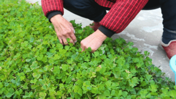 李书珍:“春天正是草头嫩的时候,你看颜色碧绿碧绿的,采草头是有讲究的,不好猛力,只能轻取,采了还能再长出来,可以吃好几茬。”