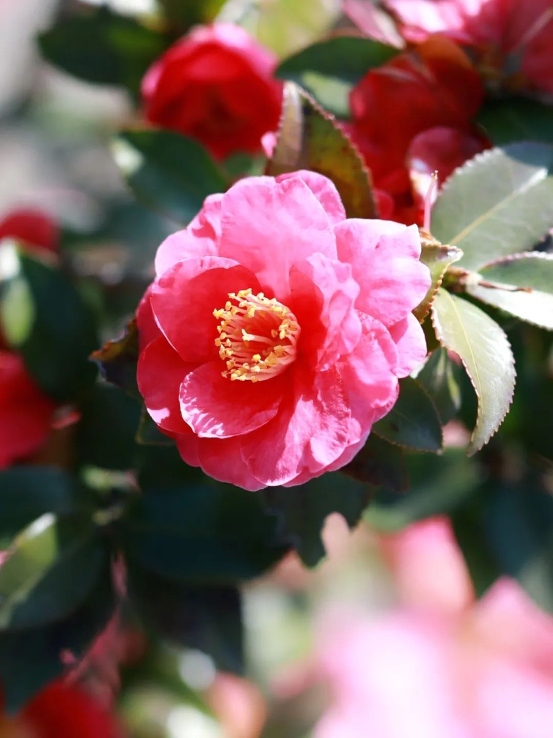 不仅仅梅花竞相绽放,在上海之鱼泡泡公园茶花迷宫里茶花更是开的灿烂,一弯粉红,温暖动人。