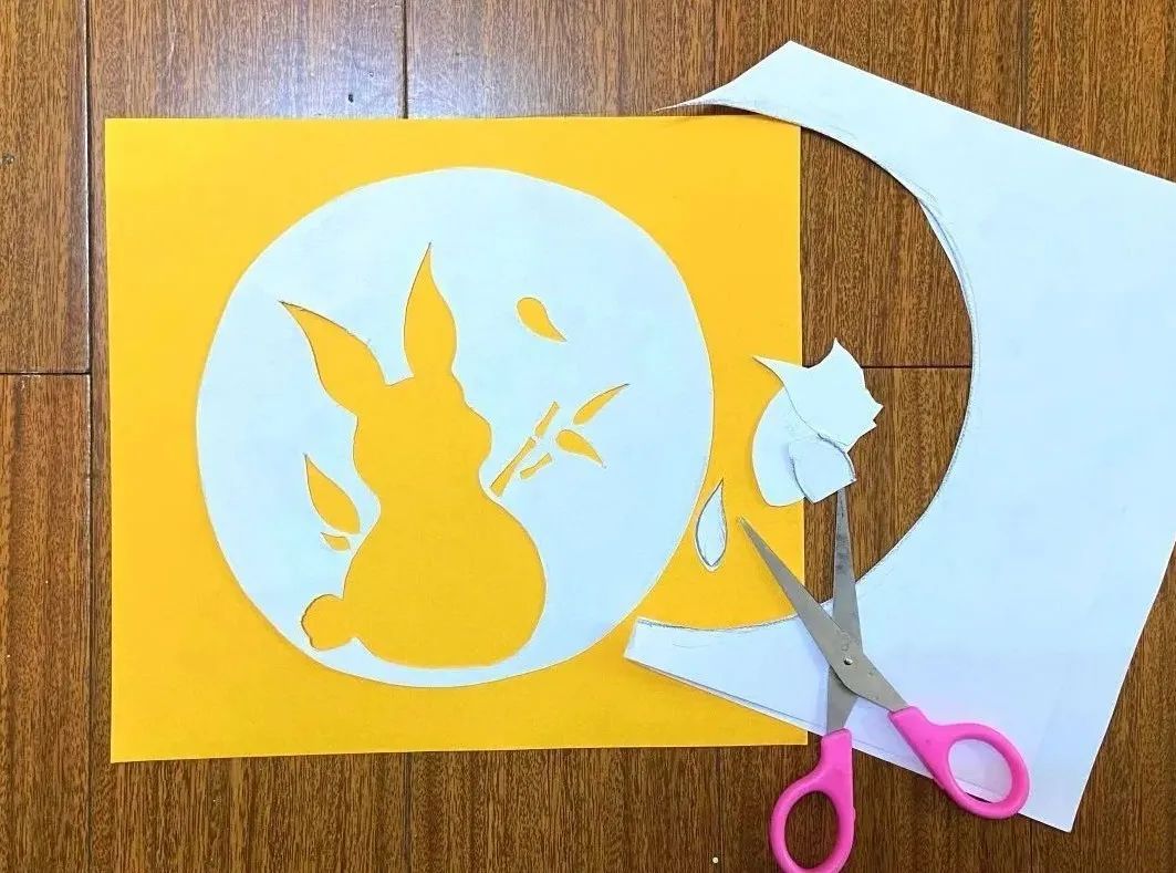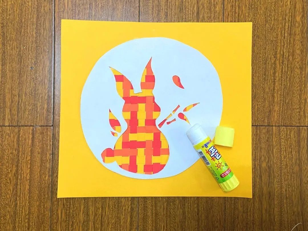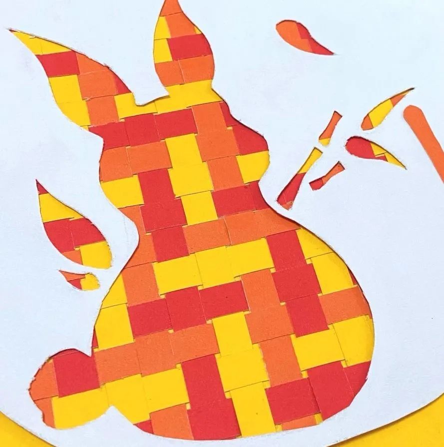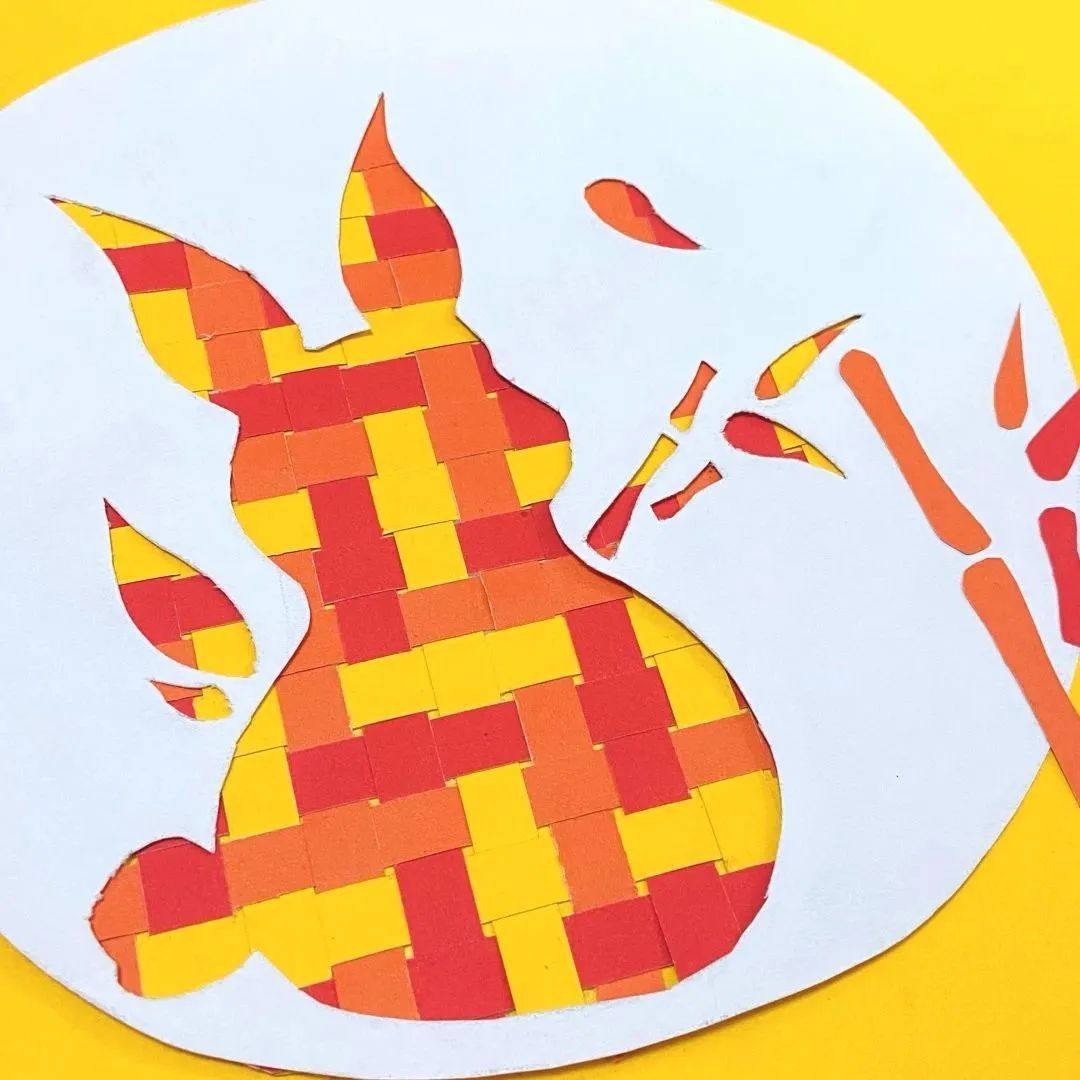 一幅简单的纸编抱竹福兔就完成啦