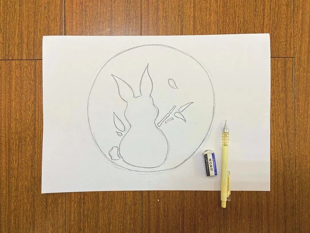 1.在白色卡纸上画出图案和圆形边框 。